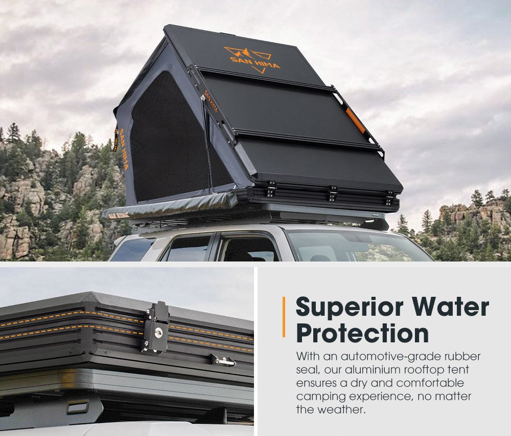 Superior Water Protection: With an automotive-grade rubber seal, our aluminum rooftop tent ensures a dry and comfortable camping experience, no matter the weather.